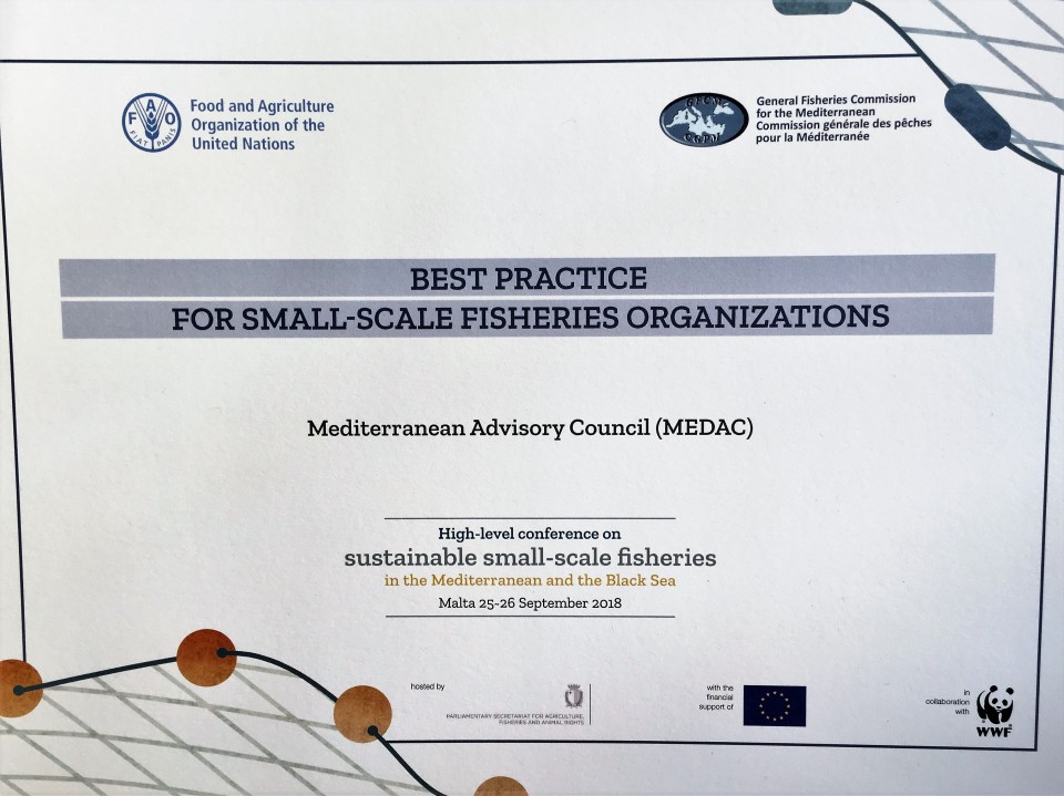 During the High Level Conference on SSF in the Mediterranean and the Black Sea, the MEDAC received the award as best practice for SSF organizations and signed the the "Firends of SSF" Platform